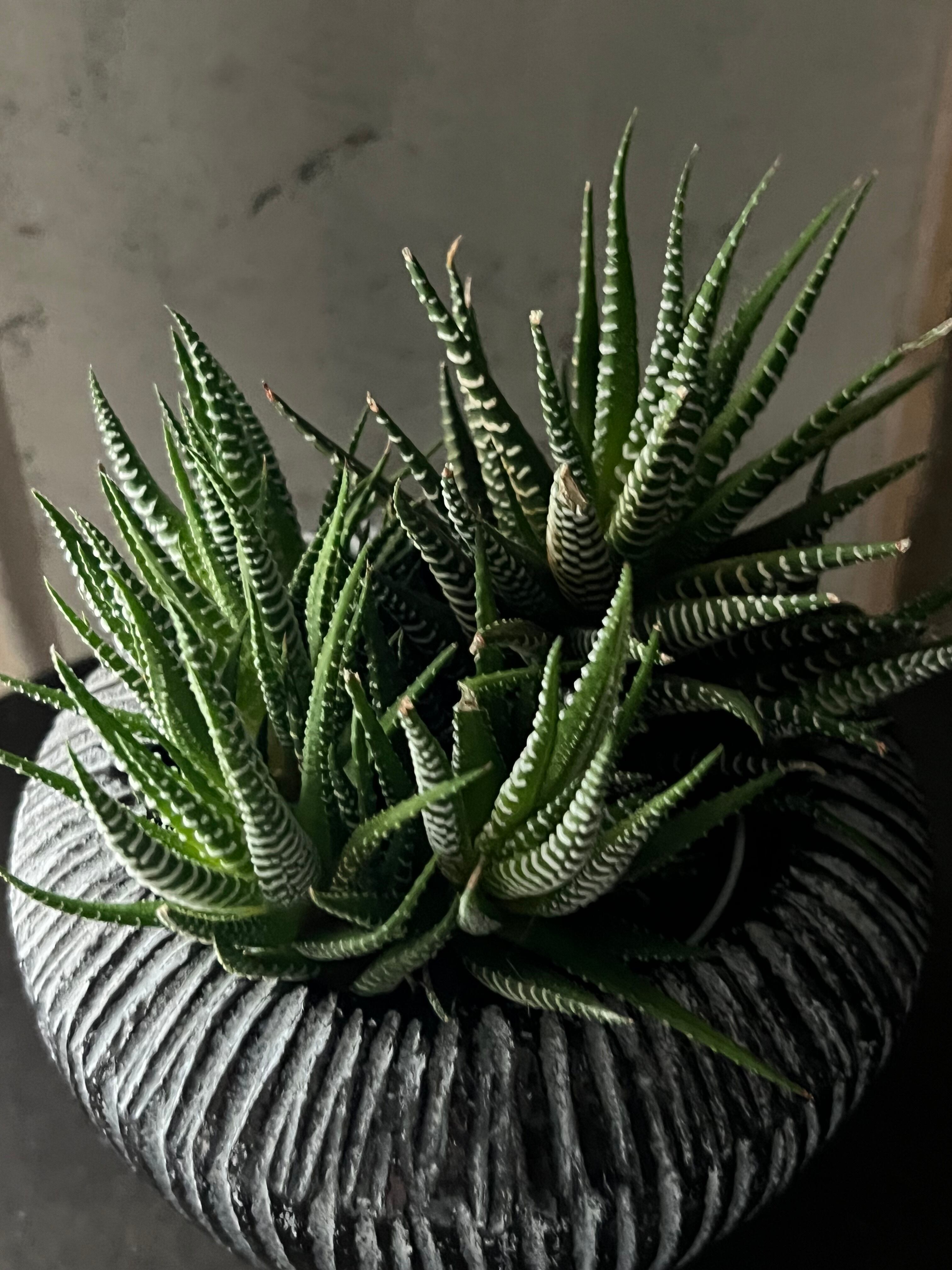 アトランティスという作品の器にハオルチアの中でも、はっきりとした白いラインが目を惹く