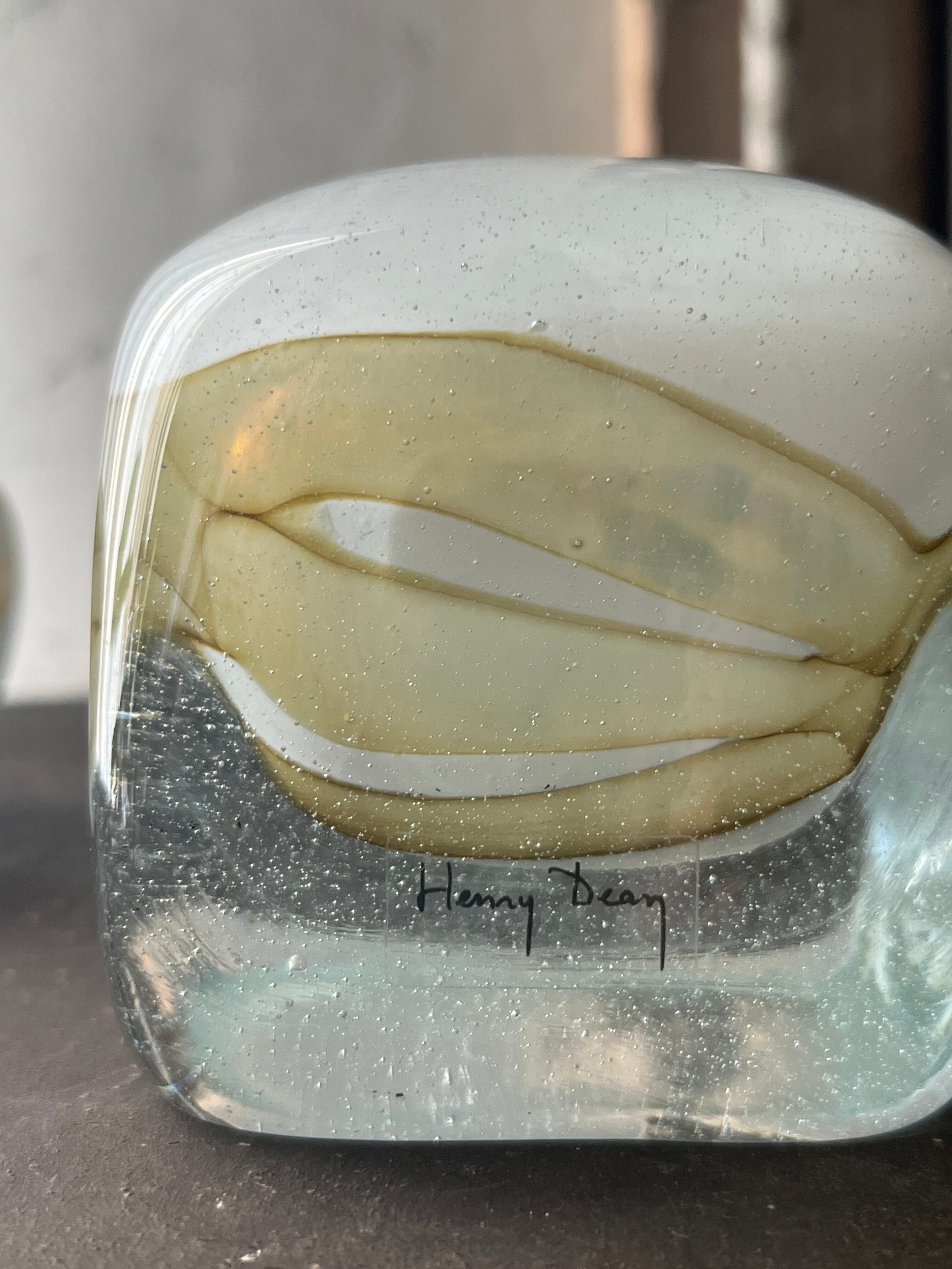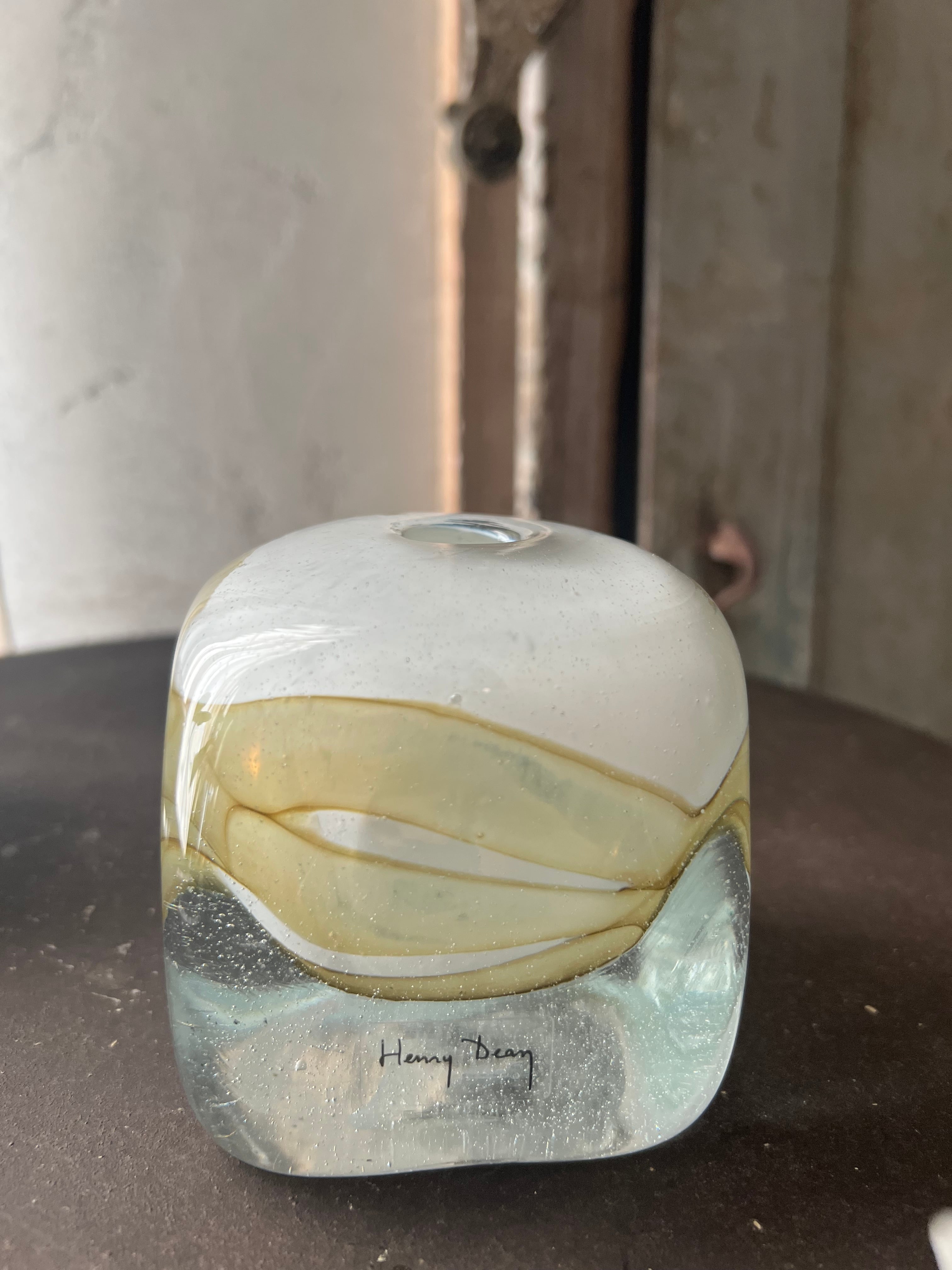 今から約30年前、ベルギーの小さな街で創始者であるデザイナーのヘンリー・ディーン氏によって始まりました。世界中に多くのファンを持つHenry Deanの魅力はハンドメイドにこだわったその”ぽってり”としたガラスの感触です。モダンでありながら、思わず手に取りたくなるような温かみをもあわせ持っています。彼は、日々の生活の中でふと浮かんだ映像をガラスによって表現してきました。現在は引退し、フランスの田舎町で静かな生活を送りますが、その情熱は2人の息子と娘に受け継がれています。古典的な吹きガラスの製法で熟練の職人たちによってひとつひとつ手作りされるガラスのオブジェは、それぞれが違った表情を見せ、そのガラスを手に取ると冷たいガラスの中にあたたかな温もりを感じます。