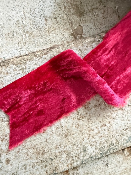 エストニアから入荷したベロア素材のリボンです。 マットで上品なニュアンスカラーです。 こちらのリボンは縁がフリンジになっています 触れると独特なくたっとした手触りです。まるで古布のようです。 ツリーやリースに結んでお楽しみください。 6.5cm×1m