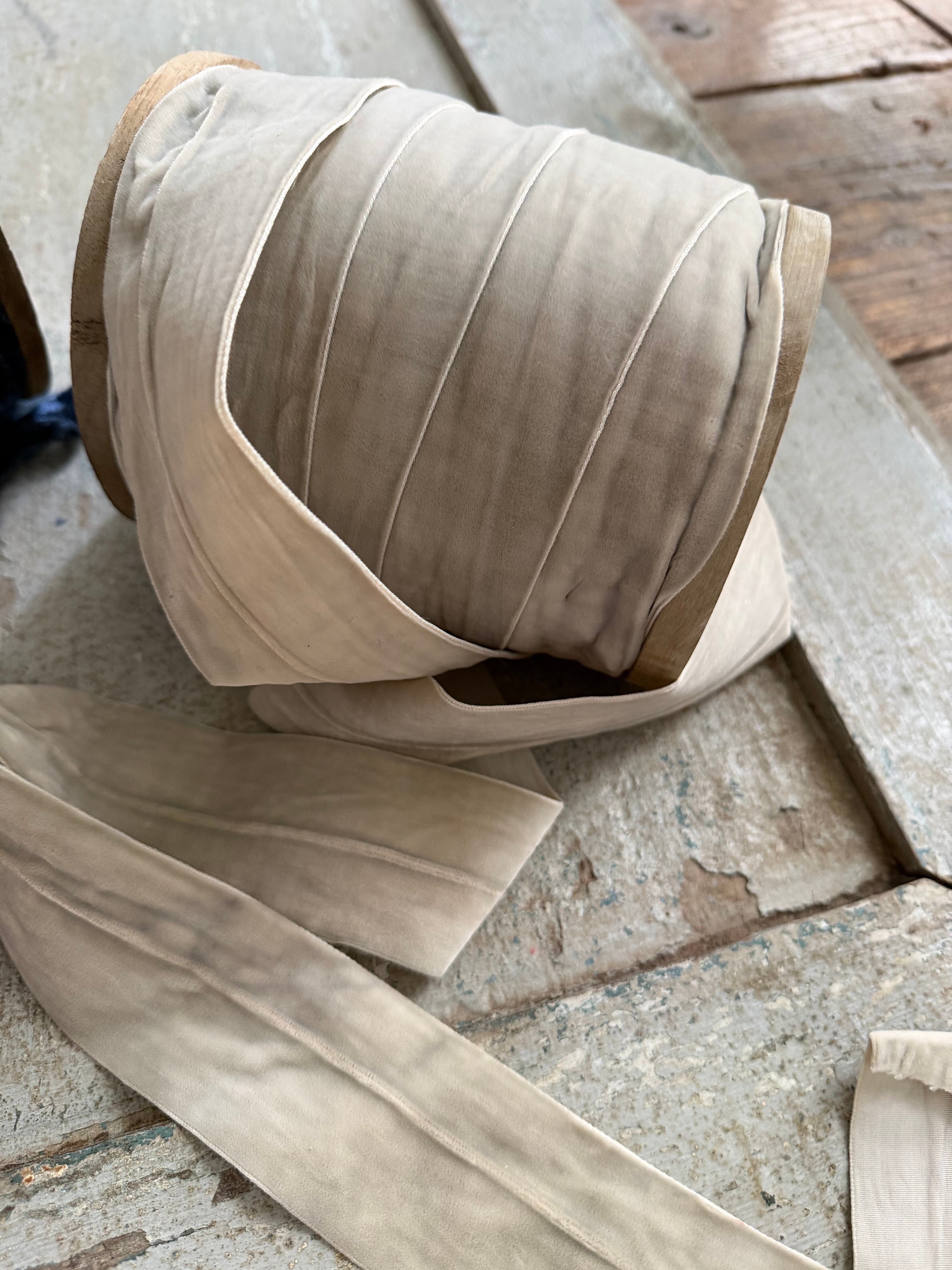 エストニアベロアリボン ベージュホワイト(6.5cm)