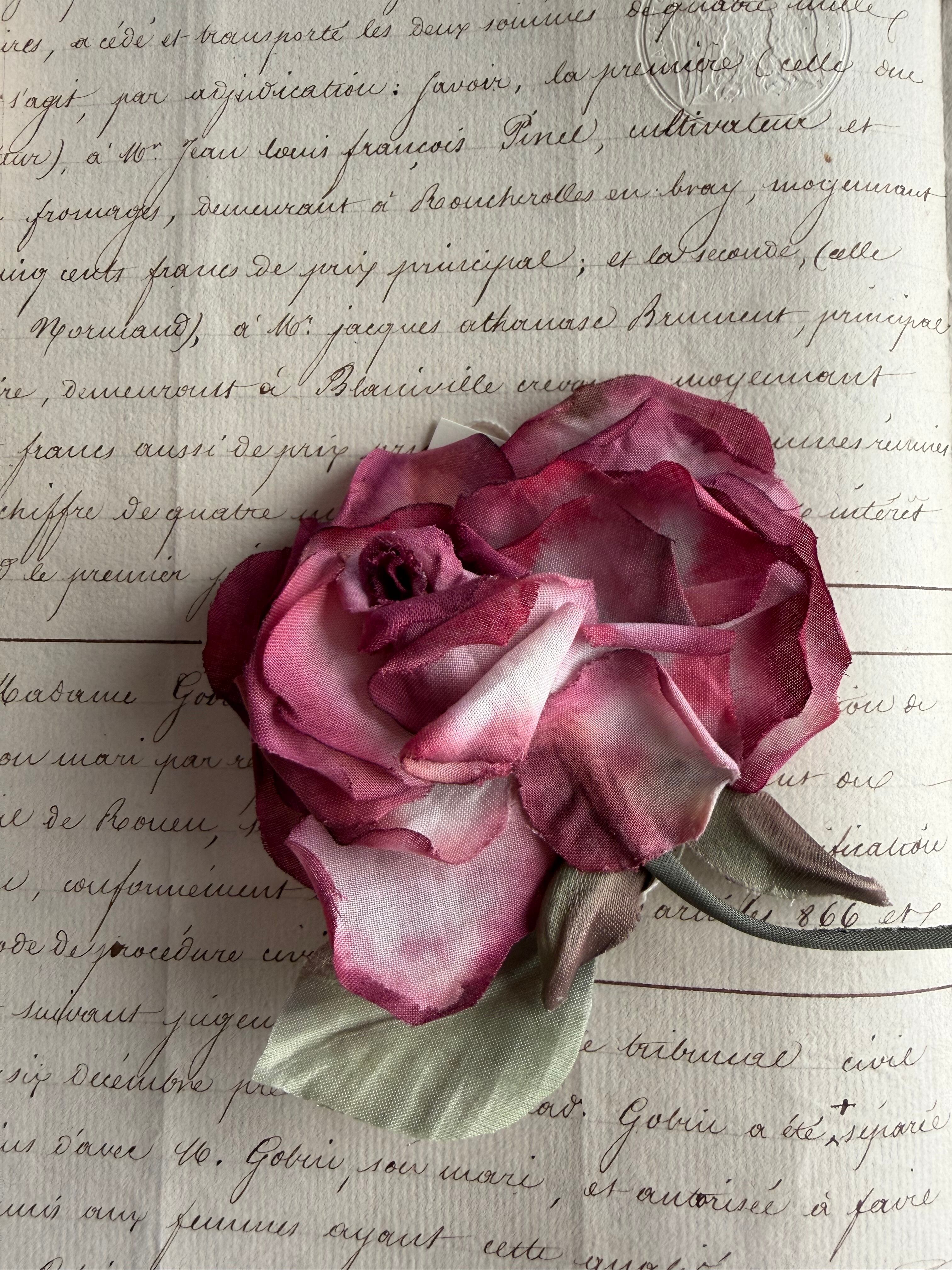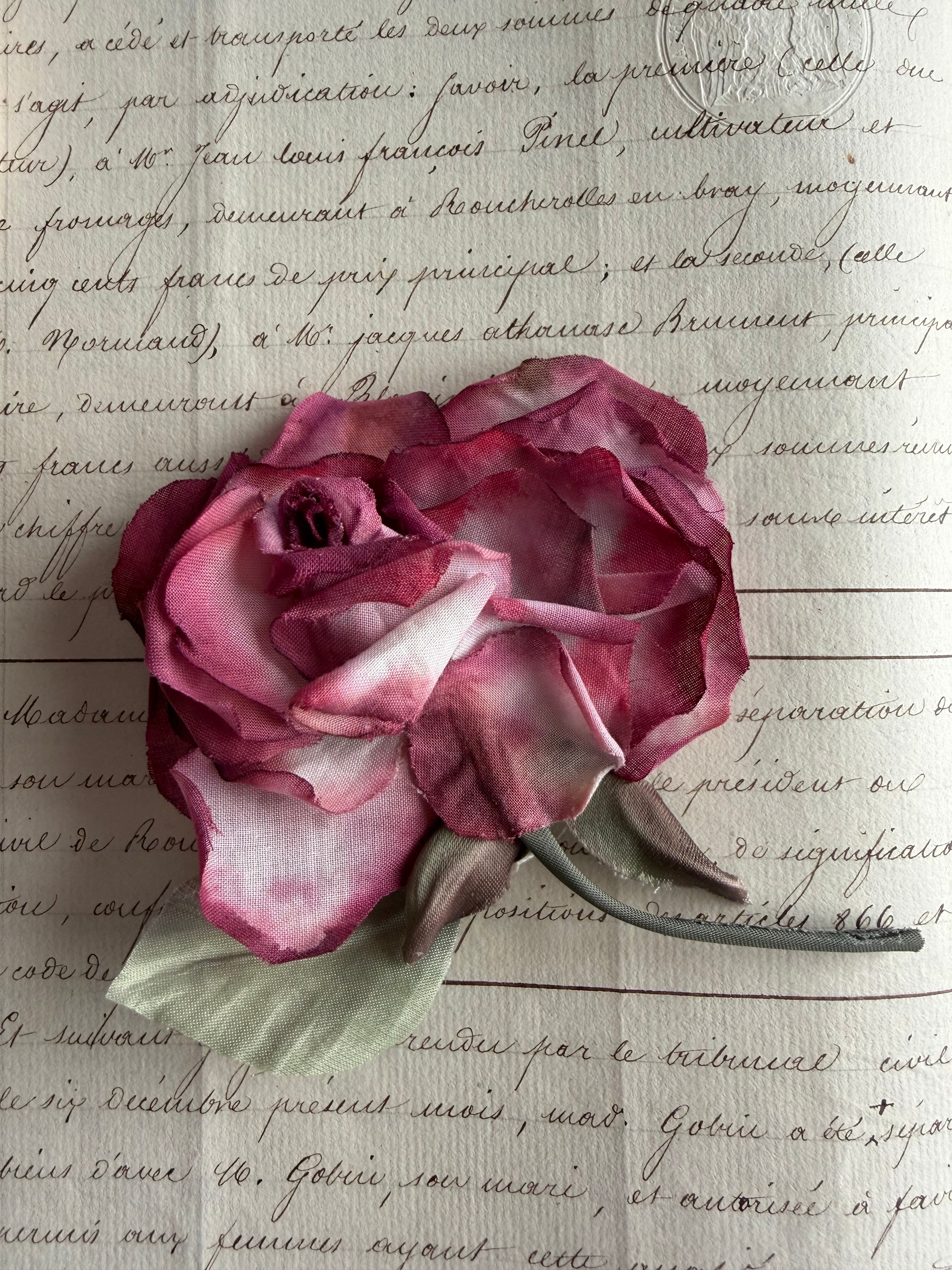 FleurDecore さんの薔薇のモチーフのコサージュです