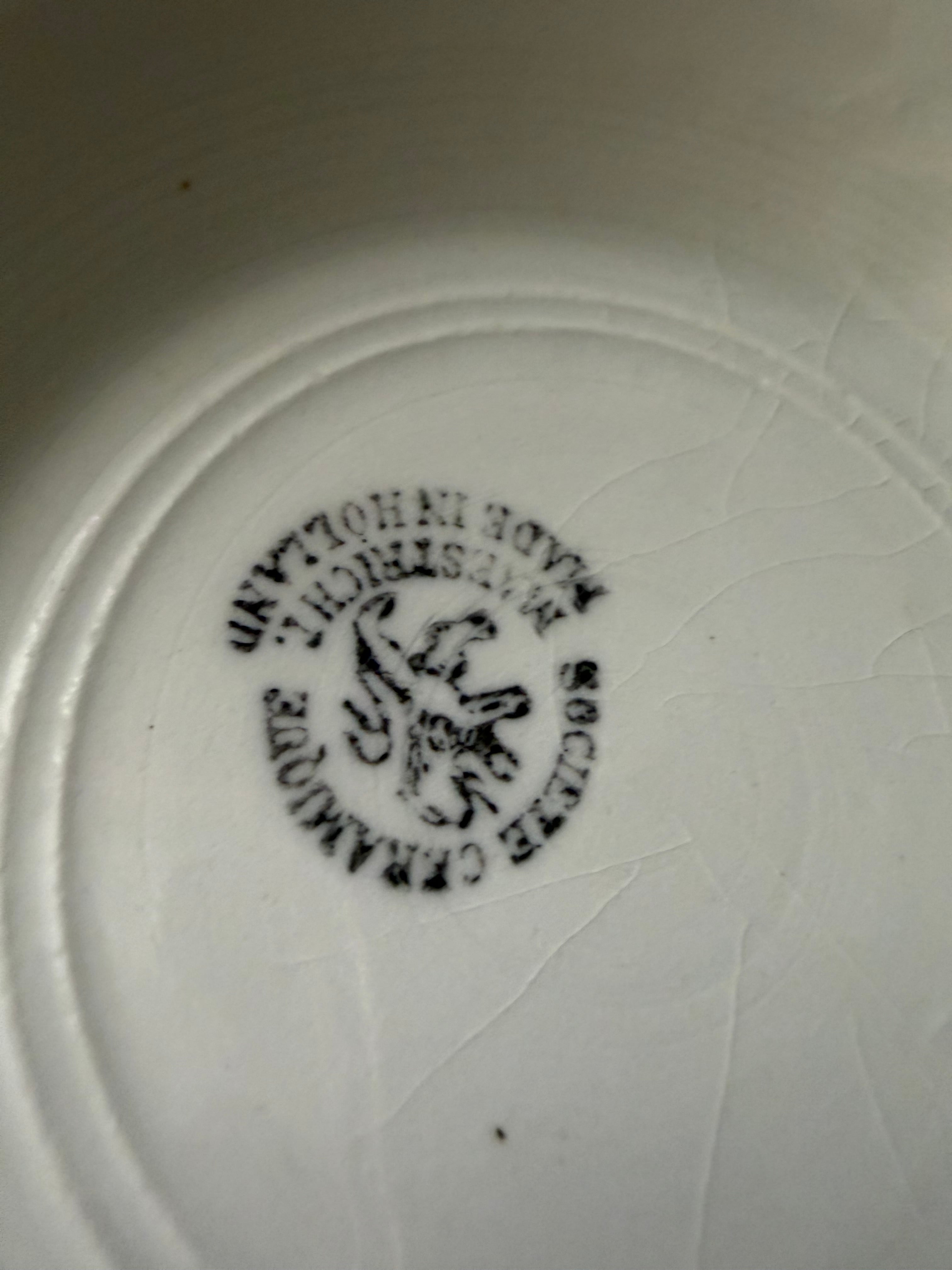 オランダ マーストリヒトにある、 ソシエテ・セラミック社の1950年代アンティーク陶器です。 艶もあり、とても良い状態です サイズ28cm×20cm