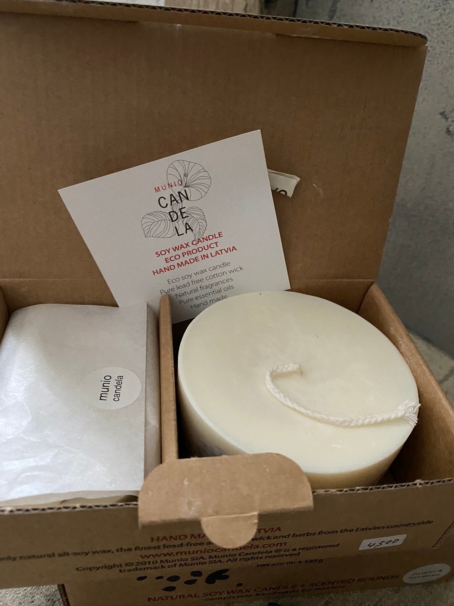 ラトビアに自生する天然ハーブやスパイスを丁寧に手積みし、 遺伝子組み換えをしていない天然大豆のソイワックスに閉じ込めて作ったハンドメイドキャンドルと、キャンドルと同じ素材で出来たアロマラウンド(芳香剤)が入ったギフトボックスです。