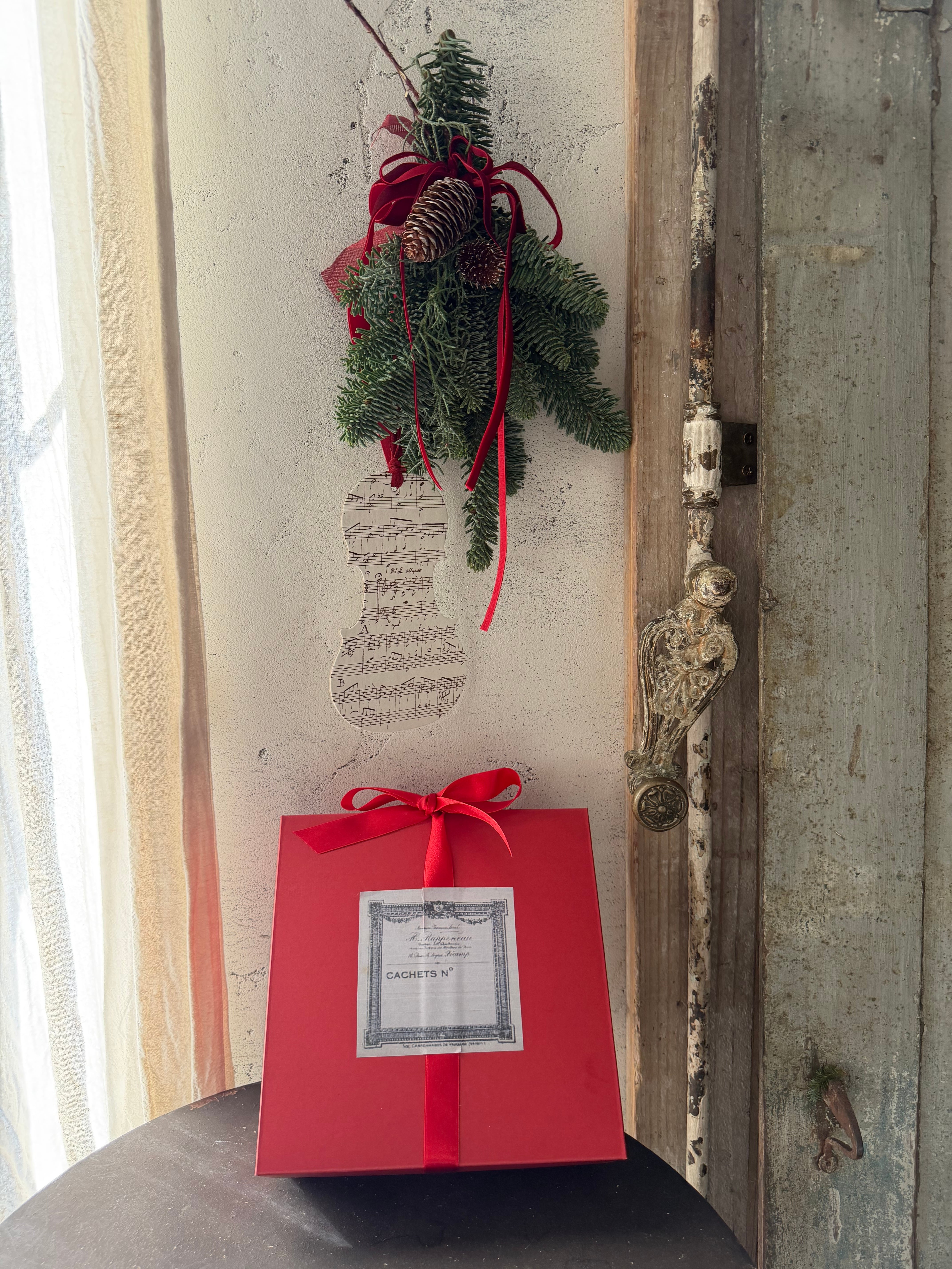 GREEN VEILクリスマススワッグをセットにしてお届けいたします。クリスマススワッグにはフランスから入荷しました音符のペーパーオーナメントがセットになっております。