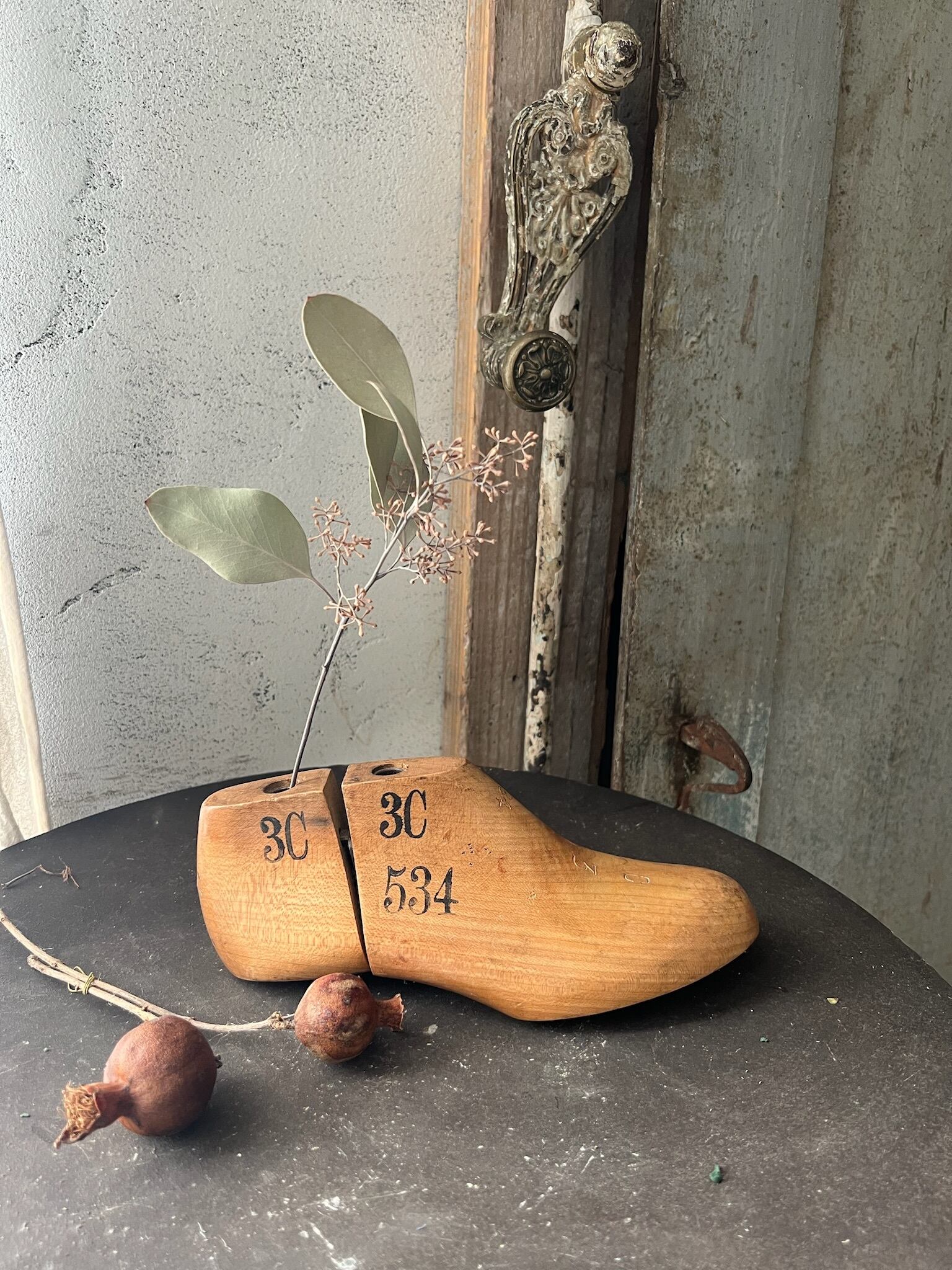 アンティークのシューモルド ペーパーウェイトや、ペン立てとしてショップのディスプレイにしていただくと 素敵です ドライフラワーを挿して飾っても良さそうです サイズ 長さ約21 センチ 幅8センチ